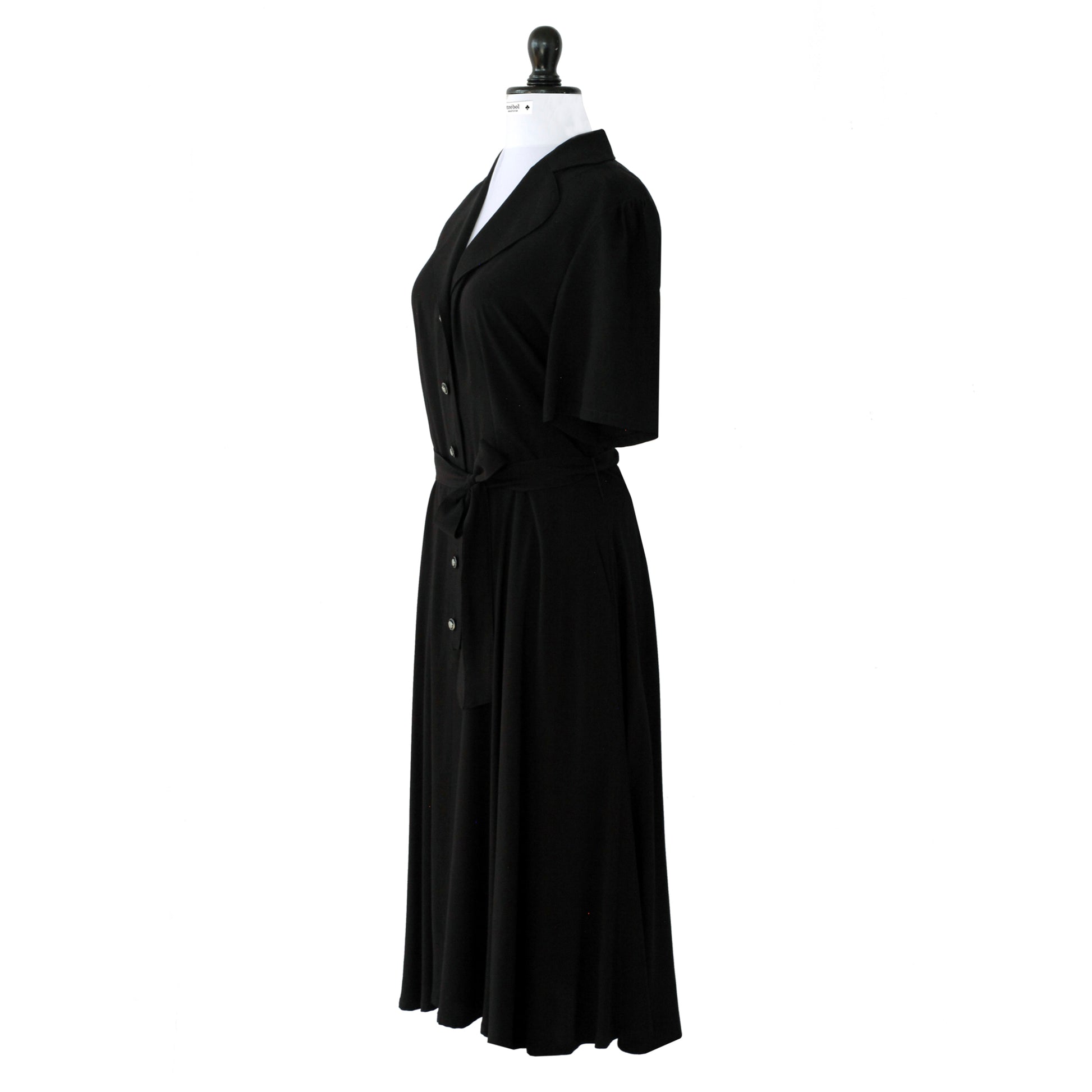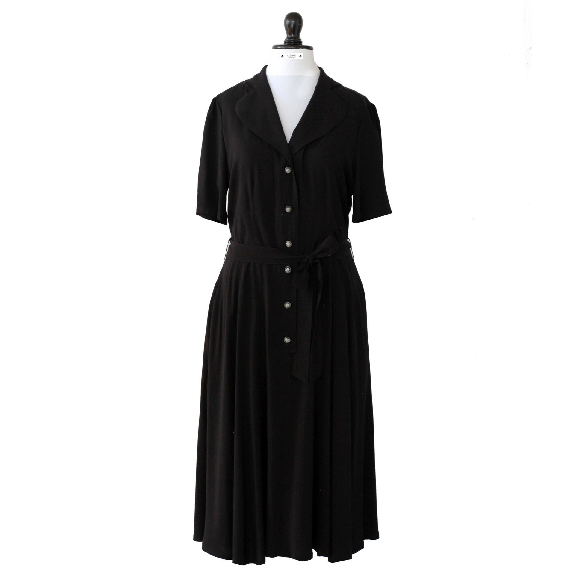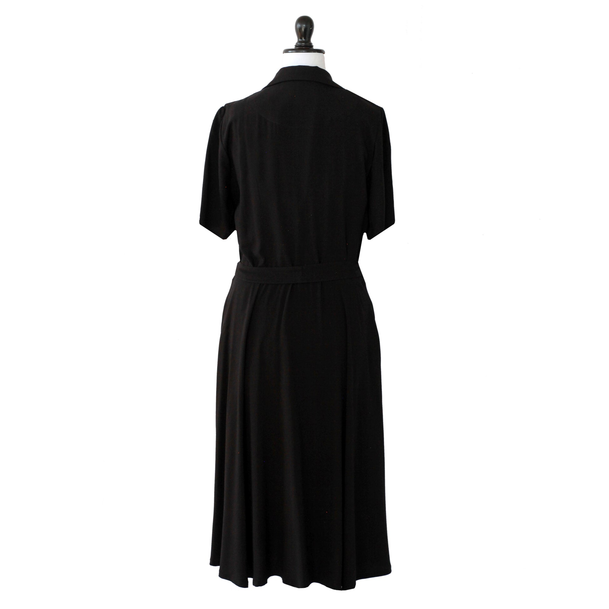 Hay veces en que la inspiración es literal. Directo desde los años 60 rescatamos este modelo clásico y sumamente femenino. Su corte favorece la visualización de una linda silueta: por un lado mangas montadas sobre los hombros con finos pliegues que añaden un toque de volumen, cuello en V rematado con solapas redondeadas en una parte superior del vestido que se ciñe al talle, marcando la cintura desde donde nace un faldón amplio y romántico.
